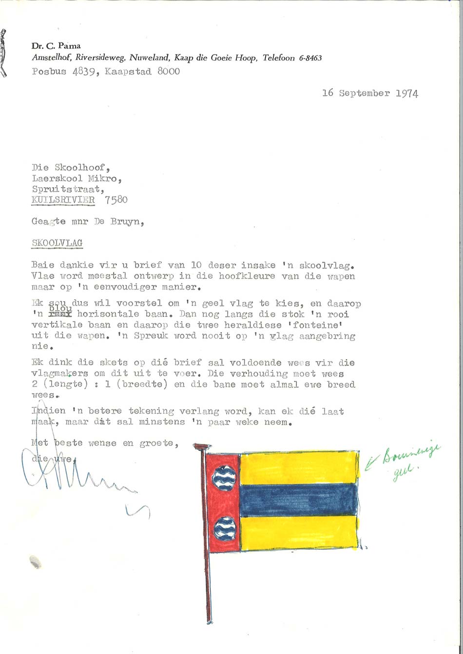 Mikro Primary opened its doors in January 1972 with Mr. Ronnie de Bruyn as the first principal. The school started with 296 learners and 12 educators. It was registered by the Department of Education as an Afrikaans single-medium school and was officially opened on 12 October 1972 by Mr. Fanie Theron, the head of education.