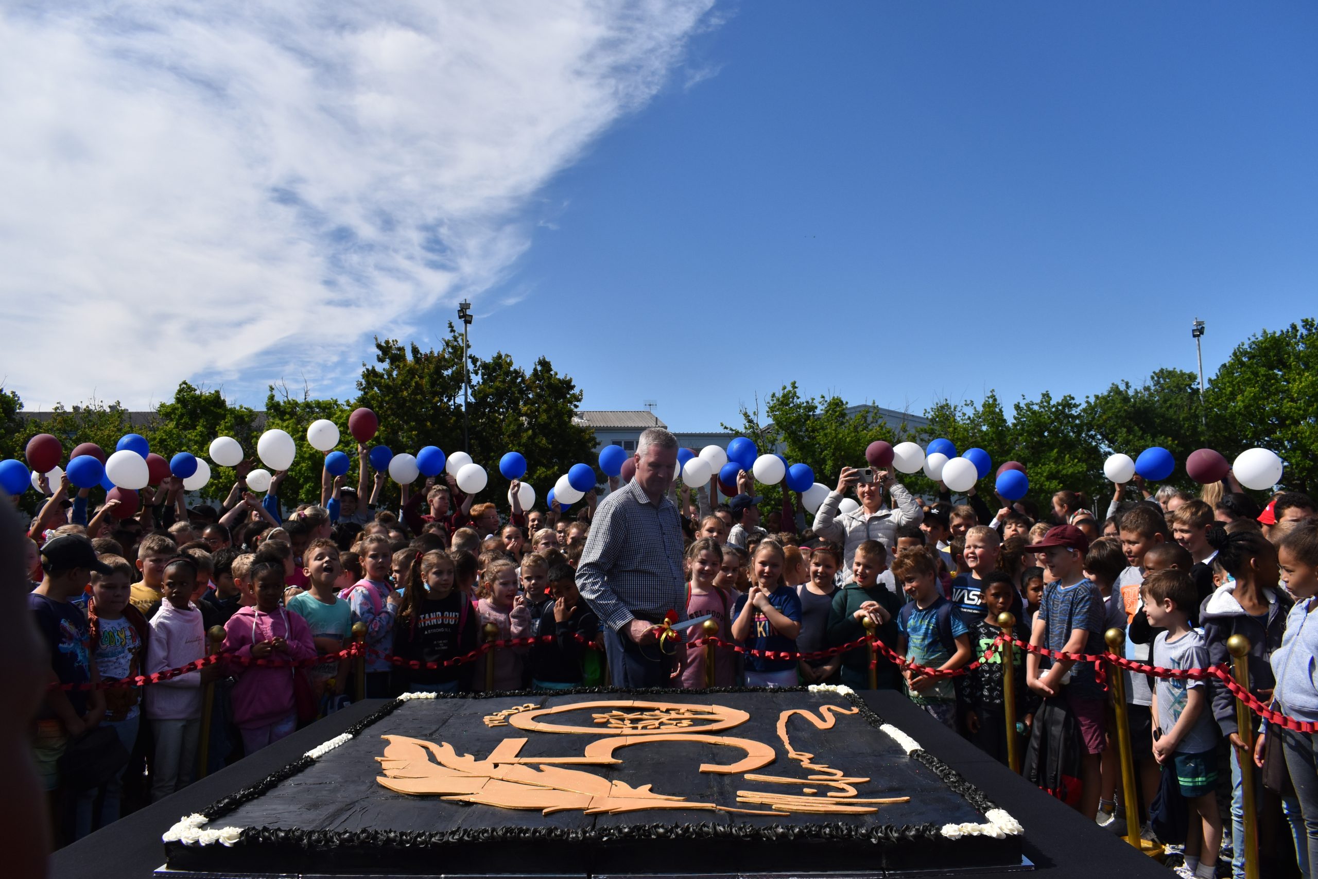 Die leerders vier ons skool se 50ste bestaansjaar met ‘n pypkarresies, ‘n reuse Fees 50 – koek (gemaak deur Cake Madness & Events) en geniet
